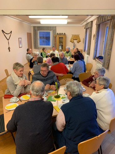 Nach der Andacht waren alle zu einem Frühstück im Pfarrhaus eingeladen. Als kleines Zeichen für das Leben durfte jede Besucherin und jeder Besucher eine Gladiole‑Blumenzwiebel mit nach Hause nehmen.
