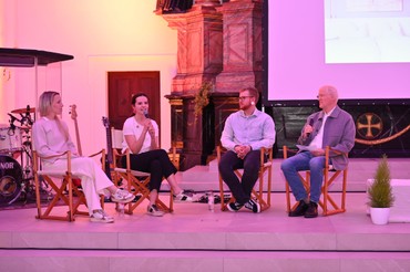 Musikalisch prägten Romina Rink und ihre Band vom Gebetshaus Augsburg den Abend. Mit modernen Worship-Songs und tiefgehenden Texten führten sie die Besucher in intensive Lobpreiszeiten. Im Rahmen eines Interviews gewährten die Musiker persönliche Einblicke in Herz, Vision und das erste Album von Romina.