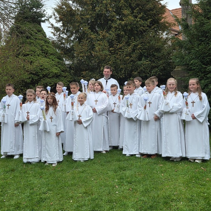 Am vergangenen Sonntag war der große Tag der Erstkommunion mal wieder gekommen! Nach einer sechsmonatigen Vorbereitungszeit konnten 19 Kinder aus Bimbach, Malkes (2) und Lütterz (2) zum ersten Mal zur Heiligen Kommunion gehen. Ein Tag auf den die Kinder lange hingefiebert haben.