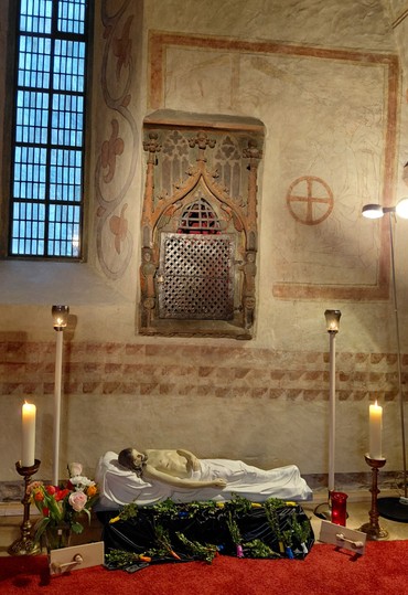 Am Karsamstag versammelten sich alle Klapperer zu einem gemeinsamen Gebet in der Turmkapelle, am „Heiligen Grab“. Dort wurden die Kinder und Jugendlichen an die eigentliche Bedeutung des Karsamstags, als einen Tag der Spannung und der Tränen, erinnert. In einer gemeinsamen Stille überlegten die Kinder und Jugendlichen, welche Situationen und Anlässe in unserer Zeit heute Menschen zum Trauern und Weinen bringen. Diese Menschen brachten die Klapperer symbolisch auf einem Taschentuch zum grabliegenden Christus. Nach der halbstündigen Gebetswache ging es zum gemeinschaftlichen Frühstück in den Jugendraum, welcher geradeso alle Kinder und Jugendlichen beherbergen konnte. Dank der Mithilfe zahlreicher Eltern konnten alle gut versorgt werden und der Jugendraum war nach der großen Menge an Kindern und Jugendlichen wieder ordentlich und aufgeräumt. Vielen Dank an dieser Stelle an alle, die dies möglich gemacht haben!