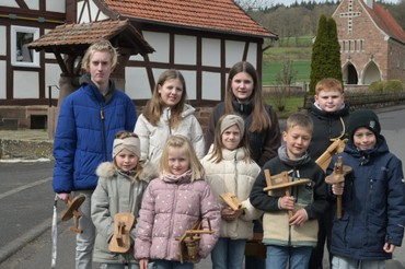 Nach der Probe für die Osternacht ging es in insgesamt 14! Gruppen und mit 65 Kindern und Jugendlichen durch Malkes, Lütterz und Bimbach. Aufgrund der vielen Engagierten war das Sammeln bereits nach zweieinhalb Stunden zu Ende und alle konnten entspannt in ihren Gastfamilien ein warmes Mittagessen einnehmen. Auch hier noch einmal vielen lieben Dank an alle, die auf diese Weise die Klapperaktion unterstützt haben!