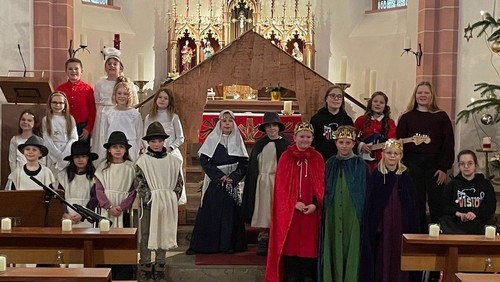Ob Könige, Hirten, Maria und Josef oder die vielen Engel – alle Kinder wuchsen über sich hinaus und wurden mit herzlichem Applaus belohnt. Besonders eindrucksvoll war das stimmungsvolle Schlussbild an der Krippe, begleitet vom Lied „Ein Kind verändert die Welt“, das die Botschaft des Abends noch einmal eindrucksvoll unterstrich.