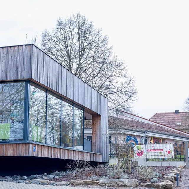 Wir betreuen in unserer Kindertagesstätte bis zu 124 Kinder ab dem vollendeten 1. Lebensjahr bis zur Einschulung. Unsere Kita beherbergt in einem Alt- und einem Neubau