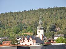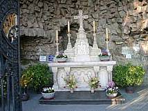 Hoch über dem Ort liegt eine der größten Mariengrotten des Bistums.