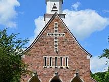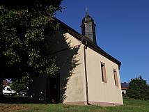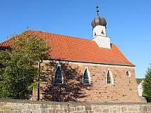 Dem Kirchenschiff von drei Fensterachsen mit kurzen Spitzbogenfenstern ist eine offene Vorhalle mit drei spitzbogigen Arkaden vorgelagert. Der holzverschindelte Dachreiter ist mit einer Schweifkuppel versehen.