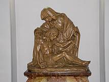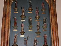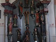Die Wände zieren mehrere Holzplastiken aus verschiedenen Jahrhunderten: St. Bonifatius, hl. Familie, St. Franziskus, St. Aloysius, die schmerzhafte Mutter Maria (Pietá), St. Wendelin und St. Elisabeth von Thüringen.