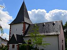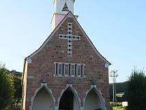 Nach 5 Jahren Bauzeit wurde die jetzige Pfarrkirche am 28.08.1845 eingeweiht. Sie ist ein schmuckloser Rechteckbau (27,25 m lang und 13,00 m breit) von Fensterachsen mit unverputztem Bruchsteinmauerwerk.