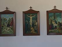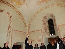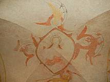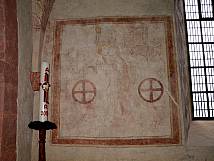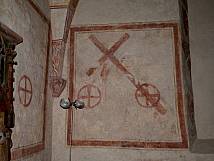Im Jahre 1963 wurden spätgotische Wandmalereien freigelegt. Der Bilderzyklus zeigt den Leidensweg Jesu in verkürzter Form. Alle Bilder sind von rot-gelben Streifen umrahmt.
