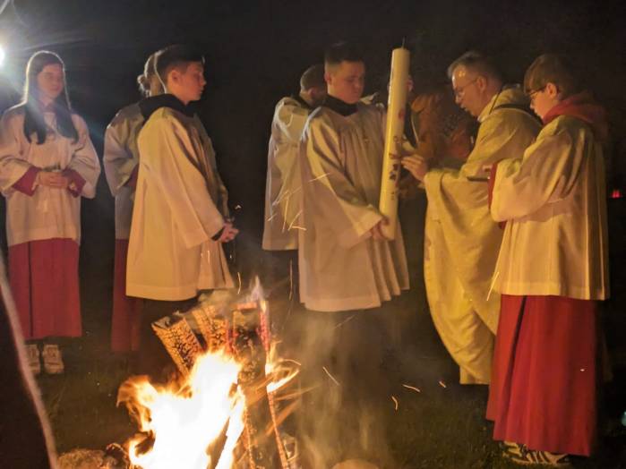 Und nun wieder zu den schönen und positiven Dingen. Trotz eines anstrengenden Klappereinsatzes und der Umstellung von Winter- auf Sommerzeit, ließen es sich zahlreiche Messdiener nicht nehmen, die Osternacht feierlich mitzugestalten. Auch die Kommunionkinder, welche sich in großer Zahl an der Klapperaktion beteiligten fehlten bei keinem der drei wichtigsten Gottesdienste des Kirchenjahres.
