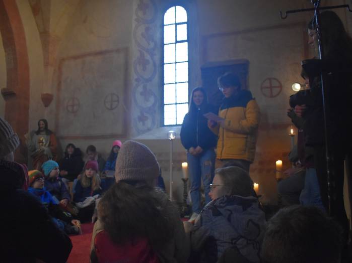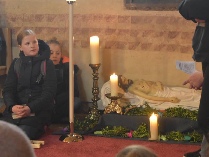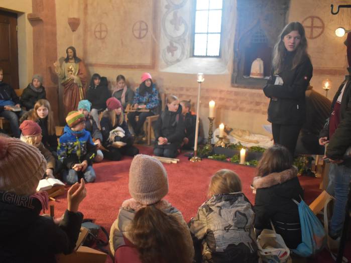 Nach den Osterfeierlichkeiten gehen die Arbeit im Hintergrund bei den Gruppenleitern natürlich nahtlos weiter. So wurden die Erstkommunionkinder bei ihrer ersten Probe in der Kirche besucht. Bei ihrem Besuch machten die Gruppenleiter Werbung bei den Kommunionkindern, damit auch diese bald als Messdiener am Altar stehen. Mit zwei kleinen Videos und persönlichen Erfahrungsberichten weckten die Jugendlichen das Interesse bei den anwesenden zwölf Kommunionkindern.