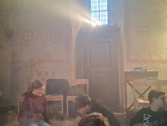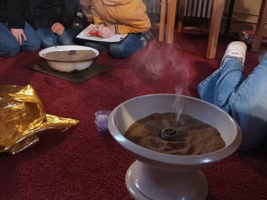 Die Messdiener untersuchten in circa 90 Minuten die Weihrauchsorten auf Farbe, Brennverhalten, Geruch (vor und nach dem Verbrennen.) und wie stark der verwendete Weihrauch qualmt. Am Ende stellten die Messdiener eine riesige Geruchsvielfalt von „Klo- Stein- Duft“ bis „Weihnachtsbäckerei- Duft“ fest. Auch beim Qualm gab es große Unterschiede. Bereits im Vorfeld erklärte Pater Piotr, dass stark dampfender Weihrauch vorallem ein katholisches Phänomen ist. In der orthodoxen Kirche setzt man hingegen weniger auf dicke Luft und dafür auf ein intensiveren Geruchserlebnis.