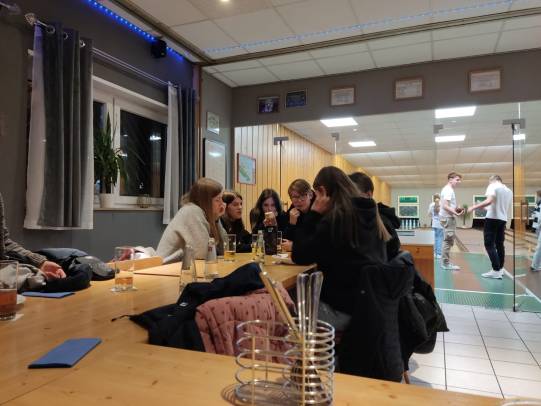 Am vergangenen Freitag zog es die Ministranten auf die Kegelbahn. Über zwanzig gut gelaunte Freunde des gebohnerten Bahnsports machten sich auf den Weg in die Fuldaer Heidelsteinstraße. Dort wurden unterschiedliche Kegelspiele wie beispielsweise: Hausnummern- oder Tannenbaumkegeln gespielt. Dabei kamen Spaß und gute Laune natürlich nicht zu kurz. Neben dem Kegeln gab es auch eine große Speisekarte voller Leckereien, sodass sich der ein oder andere Messdiener auch direkt mit einem kleinen Abendessen versorgte. Nach einigen Runden auf der Kegelbahn war der kurzweilige Abend auch schon wieder zu Ende und es ging mithilfe vieler Messdienereltern wieder zurück nach Bimbach.