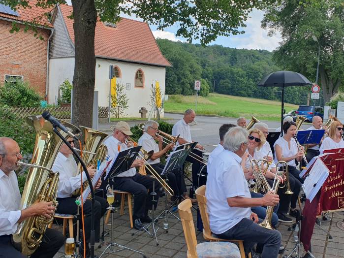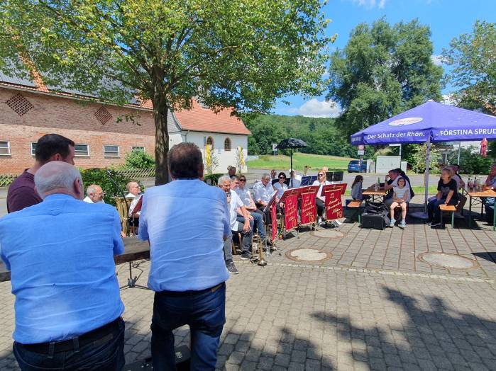 Nach dem geistlichen Höhepunkt in der Kirche, erwartete alle Gäste ein kleines Programm am Feuerwehr- und Bürgerhaus. Bei einem frischgezapften Bier spielten die Musikfreunde Müs zu einem zünftigen Frühschoppen auf, welche sich bis in den frühen Nachmittag zog. Auch kulinarisch ging es recht festlich zu. Ein abwechslungsreiches Salatbuffet wurde durch die Lütterzer Frauen hergerichtet. Dazu gab es leckeres Gulasch mit Serviettenknödel.