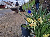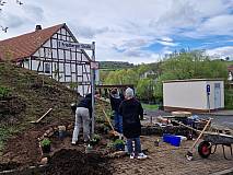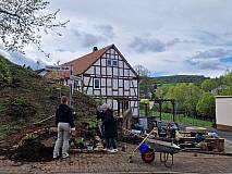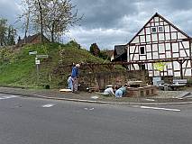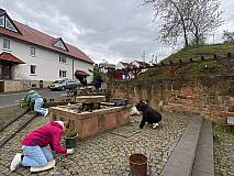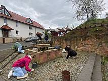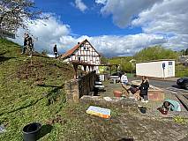 Aus Sicherheitsgründen mussten in jüngster Zeit beim Dorfbrunnen Bäume gefällt werden, was zu einem trostlosen Anblick des Areals führte. Eine Aktionsgruppe hat daher den Hang neu mit Sträuchern angelegt, vor die Sandsteinmauer eine Kletterrose sowie einen wilden Wein gepflanzt. Die Pflanzen wurden gesponsert u.a. von der Gärtnerei Blumen Hahn in Großenlüder und der Baumschule Büchsel in Bimbach, so dass der Gemeinde keine Kosten entstanden sind. Das Unkraut/die Wildkräuter zwischen den Pflastersteinen wurden umweltfreundlich ganz ohne Chemie und Gasbrenner rein mechanisch entfernt. Der Dorfbrunnen hat mit dieser Aktion eine erhebliche Aufwertung erlangt und wird, wenn alles wieder grünt und blüht, vielleicht wieder mal ein Platz der Begegnung.