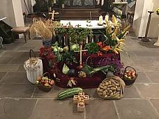 Das Kirchenteam St. Simon und Judas, Blankenau, hat hierzu den Altarraum mit den unterschiedlichsten Früchten aus den heimischen Gärten mit sehr viel Liebe dekoriert, um zu zeigen, welche reiche Gaben uns Gottes schöne Natur auch in diesem Jahr wieder geschenkt hat.