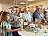 Dass innerhalb der nun zusammengehörenden Kirchorte schon Verbindungen geknüpt und sich ausgetauscht wurde, zeigte sich nicht nur an den angeregten Gesprächen der Besucherinnen und Besucher an den Tischen oder auch vor der Landkarte mit dem „Kirchen-Puzzle“, sondern auch daran, dass sich aus allen Orten Menschen bereitfanden, den ein oder anderen Dienst, z.B. in der Küche oder an der Theke, zu übernehmen. Auch der von Markus Otterbein organisierte Verkaufsstand mit fair gehandelten Produkten bot Gelegenheit zum „Schnacken und Shoppen“. Am frühen Nachmittag bat Pfr. Hartel dann noch einmal alle ehemaligen Pfarrgemeinde- und Verwaltungsräte aus den Kirchorten auf die Bühne, um ihnen für ihr Engagement zu danken. Als kleines Zeichen der Wertschätzung wurden sie mit einem Foto ihrer jeweiligen Kirche beschenkt.