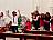 Kirchenbesucher ohne Verkleidung bekamen lustige Hüte aufgesetzt, damit alle teilhaben und Spaß haben konnten. Herr Pfarrer Hartel betonte, dass Christen gute Gründe haben gerade in der Faschingszeit fröhlich zu feiern, auch mit Blick auf die kommende Osterzeit. Zum Abschluss konnte sich jeder noch einen Faschingsorden mit nach Hause nehmen.