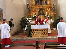 Am Samstagabend 29.07.2023 feierte die katholische Kirchengemeinde Hainzell den Patronatstag St. Simplicius, Faustinus und Beatrix. Die Vorabendmesse wurde von Ortspfarrer Sebastian Latsch und Diakon Markus Hildebrand zelebriert. Für eine besonders feierliche Gestaltung sorgten die musikalischen Beiträge: Markus Bolz als Leiter, Mariella Zengerle (beide Hainzell) und Claudia Wehner (Großenlüder) boten geistliche Gesangsbeiträge „vom Feinsten“, abgestimmt mit Peter Ziegler (Fulda), der an der Orgel begleitete. Er harmonierte mit dem Gesangstrio und setzte zum Abschluss der Messe mit Händels „Messias“ einen instrumentalen Glanzpunkt. Das Engagement der vier Musiker wurde mit begeistertem Applaus quittiert. Glück hatte der Pfarrgemeinderat als Veranstalter auch mit dem Wetter: nach dem Gottesdienst hörte die „Regenzeit“ auf, so dass am Kirchplatz ein „sonniger“ Ausklang mit guten Gesprächen bei Grillwurst und Getränken möglich war. Herzlichen Dank an alle Mitwirkenden, Helfer und Gäste! Die „Partnergemeinden im Glauben“ Innenstadtpfarrei Fulda und Rom-Magliana feierten ebenfalls den Patronatstag: aus Rom sendete Nicola De Guglielmo über Anni Honikel herzliche Grüße. Im Juni 2023 wurde er von der Papstkommission für Heiligenarchäologie für seine „unermüdliche und hochqualifizierte Präsenz“ und von der Stadt Rom auch das Komitee der Generosa-Katakomben besonders ausgezeichnet!