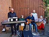 Im Anschluss versammelte sich die Gemeinde zu einer Agape im Hof, bei der das Kigo-Team Erntedank-Kekse verteilte und ein GEPA-Stand mit tollen Produkten lockte.