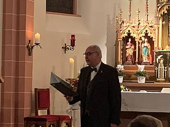 Ein Höhepunkt war das Solo von Markus Bolz mit dem Satz „Mein treuer Hirte ist mein Herr“ von Josef Haydn, der von Heiner Bockweg am Piano begleitet wurde. Bevor das Konzert sich dem Ende näherte, sprach Pfarrer Joachim Hartel den Segen und bedankte sich als Hausherr bei den Sänger:innen sowie bei den Musikanten, die ihre Talente zeigten und den Gästen präsentierten. Er freute sich die Kirche so gut mit Menschen gefüllt zu sehen.