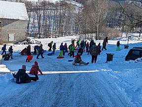 Am Ende des Vormittags wurden die Winterklamotten wieder angezogen und die Schlitten und die Poporutscher eingepackt. Bei strahlendem Sonnenschein ging es auf den Schlittenhang von Kleinsassen. Dort verbrachten die Kinder zwei glückliche Stunden, voller Winterspass. Auf dem Rückweg ins Ludwig- Wolker- Haus machte die Gruppe Station an einem kleinen Wegekreuz. Hier las unser Gemeindereferent einige Besinnungsfragen vor, welche den Kindern abschließend dabei helfen sollten, ihre Beichte im Anschluss gut ablegen zu können.