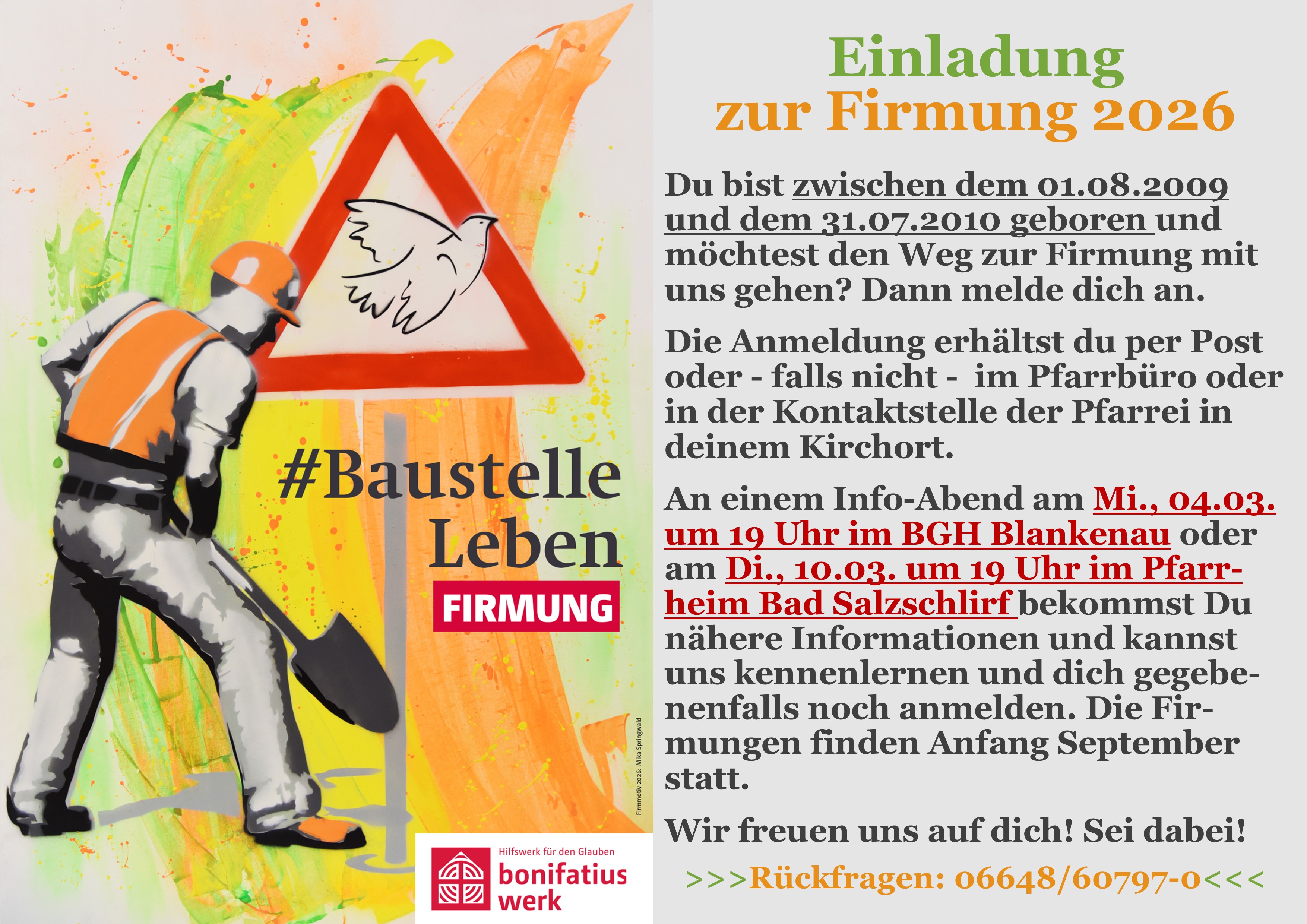 Die Firmtermine 2026 in unserer Pfarrei Heilig Kreuz im Fuldaer Land sind Anfang/Mitte September. Die individuellen Firmtermine sind abhängig von der Entscheidung der Jugendlichen zur Firmvorbereitung in Blockveranstaltungen vor Ort oder der Teilnahme an der Firmfahrt nach Rom.