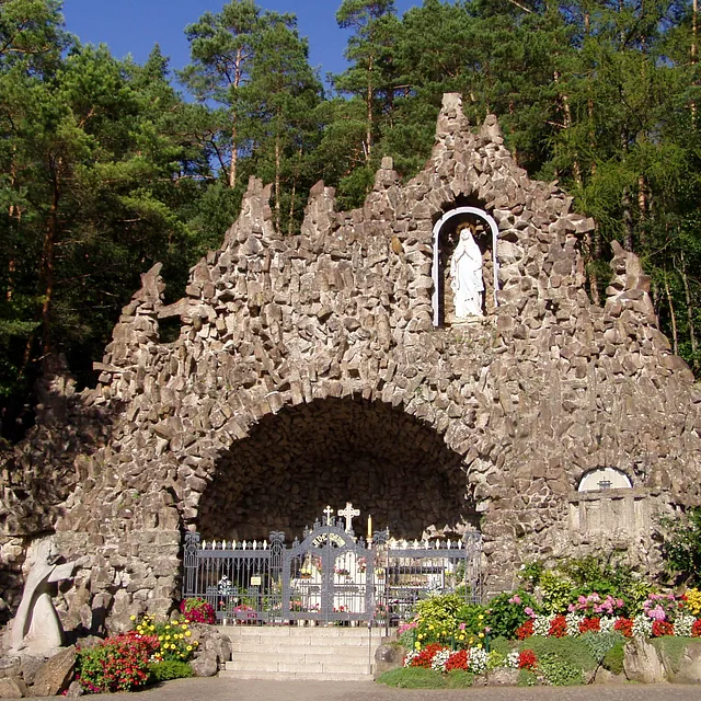 Hoch über dem Ort liegt eine der größten Mariengrotten des Bistums.