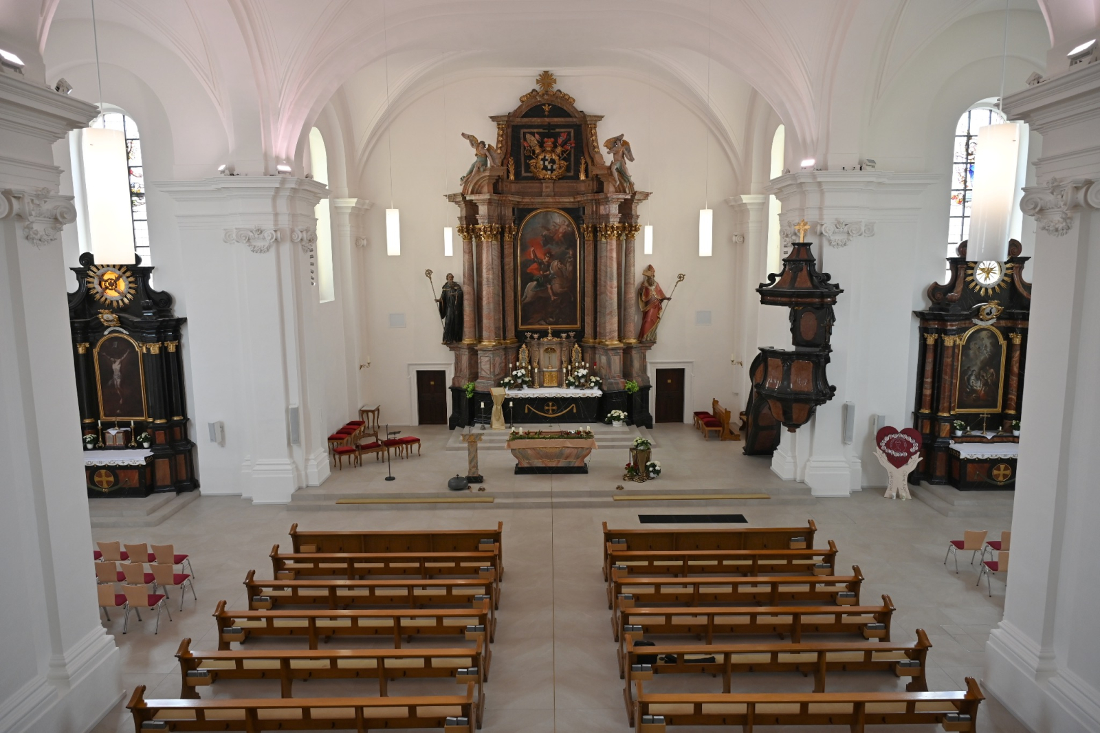 In den Jahren 1970 - 1972 wurde das Gotteshaus umfassend renoviert. Herabgefallene Stuckteile und Deckenputz im August 2018 sowie Rissbildungen im Gewölbereich der Pfarrkirche machten eine erneute Renovierung der Raumschale erforderlich. Anfang 2019 wurde mit der Planung und den notwendigen Voruntersuchungen begonnen. Die umfangreichen Renovierungsmaßnahmen dauerten von Herbst 2020 bis Dezember 2022.