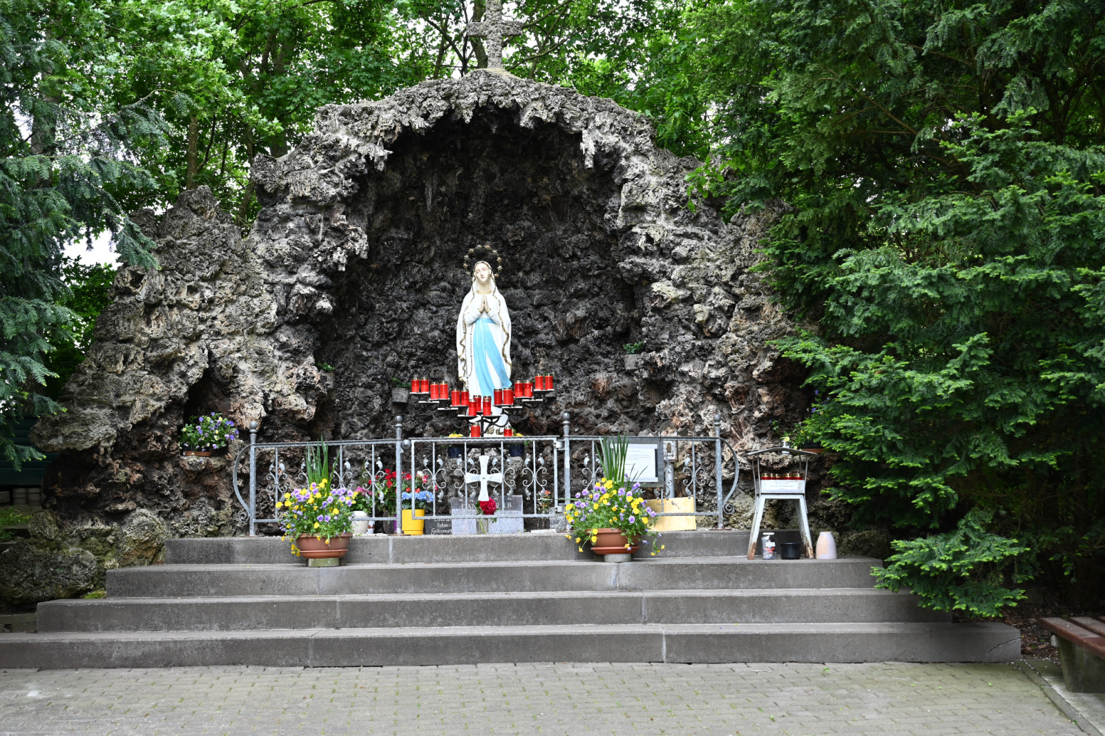 Seit 1970 erstrahlt unsere Mariengrotte im abendlichen Scheinwerferlicht und ist so für viele Gläubige weithin sichtbar. Leider ist der herrliche Ausblick von der Grotte durch eine Brücke mit kreuzungsfreier Auffahrt der nachgelegenen Bundesstraße seit 1998 etwas beeinträchtigt. Im Jahre 1999 wurde eine Neugestaltung des Vorplatzes durchgeführt. Die wunderbar gepflegte Grotte lädt viele Marienverehrer aus nah und fern ein, an diesem Ort der Ruhe und des Gebetes immer wieder zu verweilen. Die Grottenanlage wird gepflegt von unseren Gemeindemitgliedern Herbert Völlinger, Peter Hartmann, Gerhard Happ, Siegfried Lang, Josef Brähler und Franz Schleicher