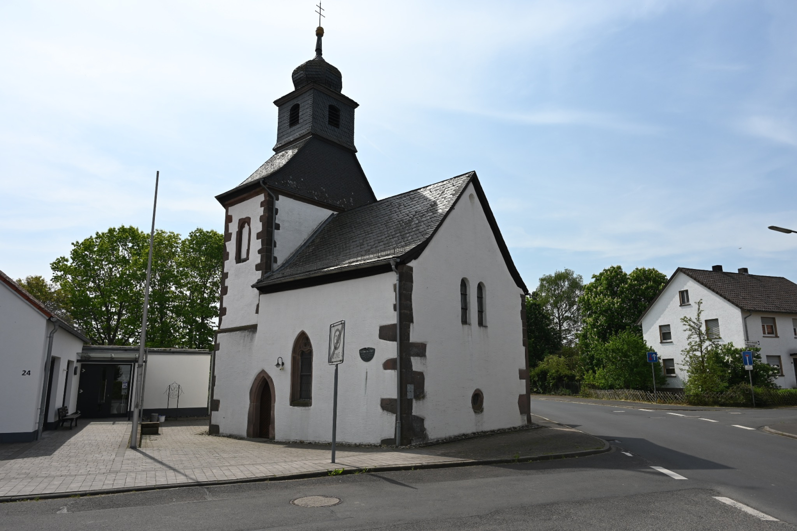 Wer von Fulda nach Großenlüder fährt, den grüßt am Osthang einer Anhöhe gelegen die Wallfahrtskapelle am Langenberg. Von hier hat man einen herrlichen Blick auf Großenlüder und in die Rhön. Die Kapelle wurde im Jahre 1682 auf dem Fundament eines früheren, im Dreißigjährigen Krieg (1618-1648) zerstörten Kirchleins zu Ehren der hl. vierzehn Nothelfer errichtet. Der schlichte Rechteckbau hat zwei Fensterachsen, einen dreiseitigen Chor mit spitzbogigen Öffnungen, einen schlanken Dachreiter mit barocker Haube und einer kleinen Glocke.